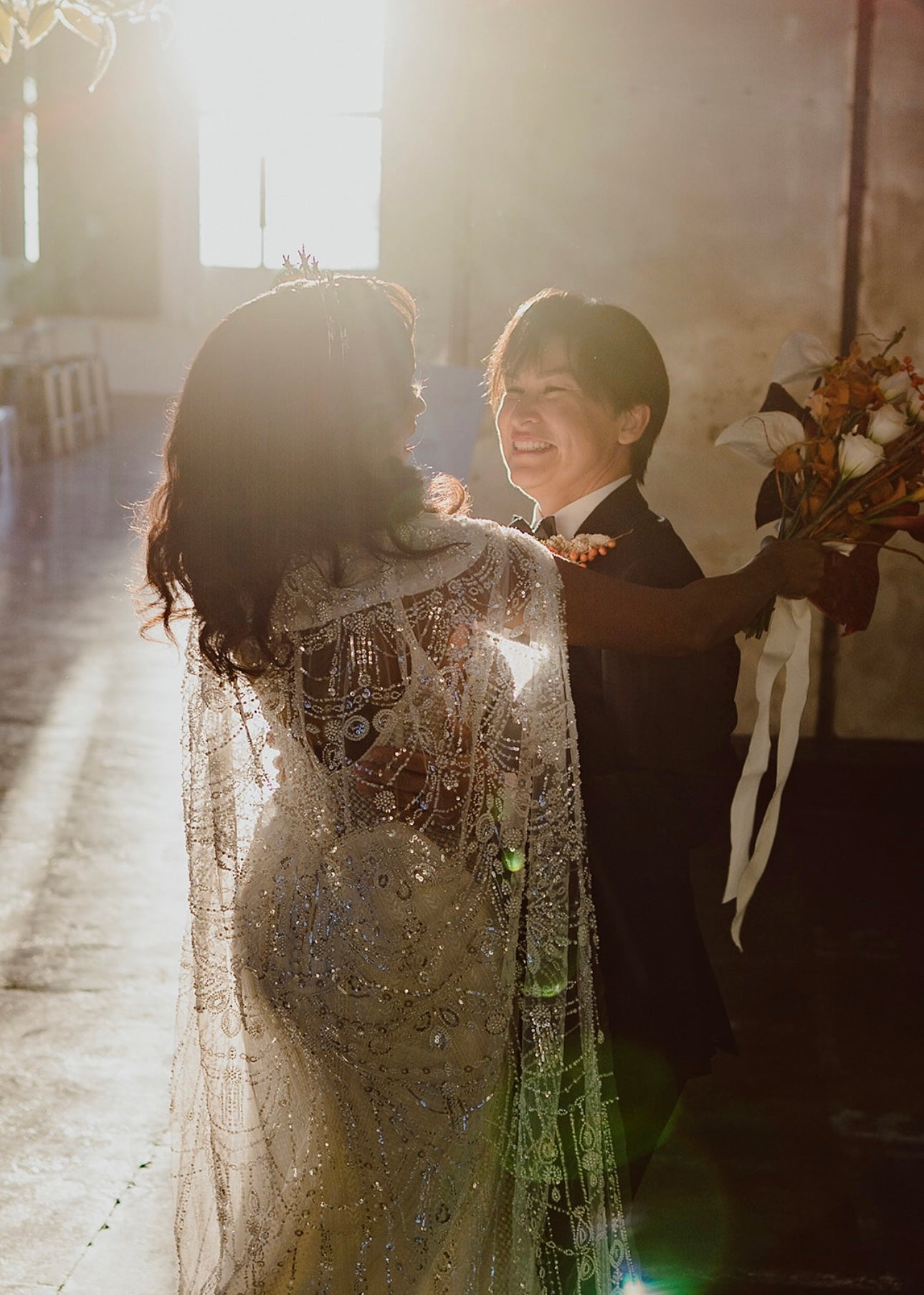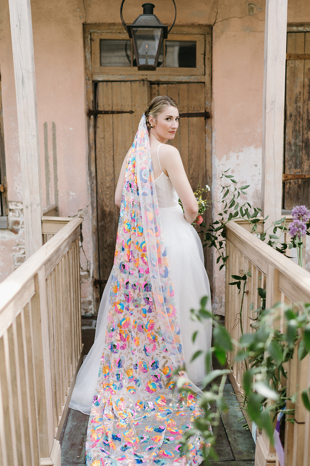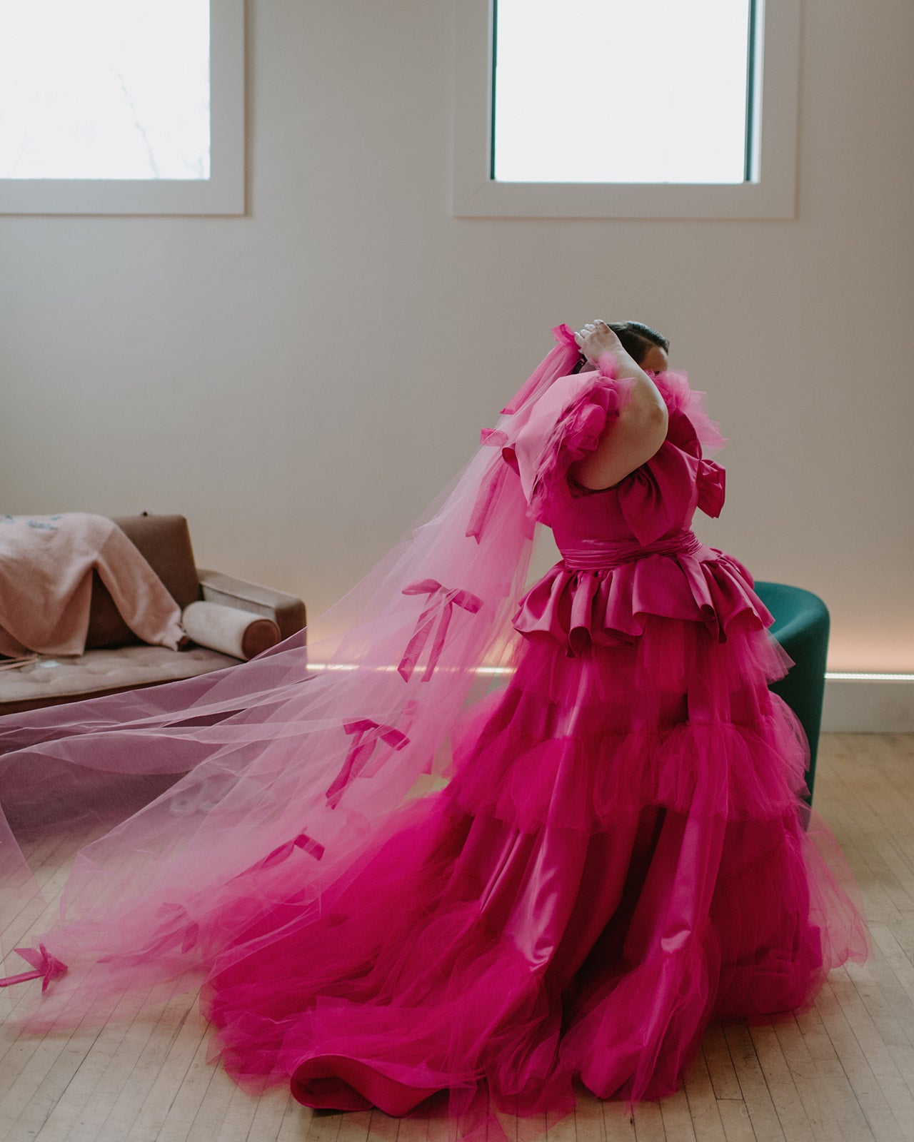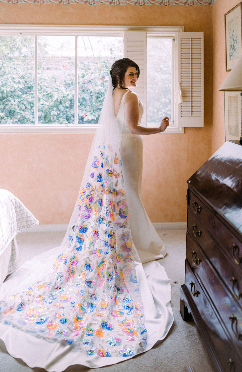 "I’m so grateful to have worked with Madison on a custom veil and cape for my wedding. The entire process was so enjoyable and I’m incredibly grateful we got to work together. From ideation and research to fittings and the final pieces, Madison brought a laid-back, positive attitude that made me feel so comfortable and heard. Everything came together exactly as I imagined and my custom pieces were truly the star of the wedding all day and night. It felt so special to have custom pieces for this big occasion. I feel so affirmed by her celebration of non-traditional brides, and her creativity and attention to detail shines in every one of her pieces."