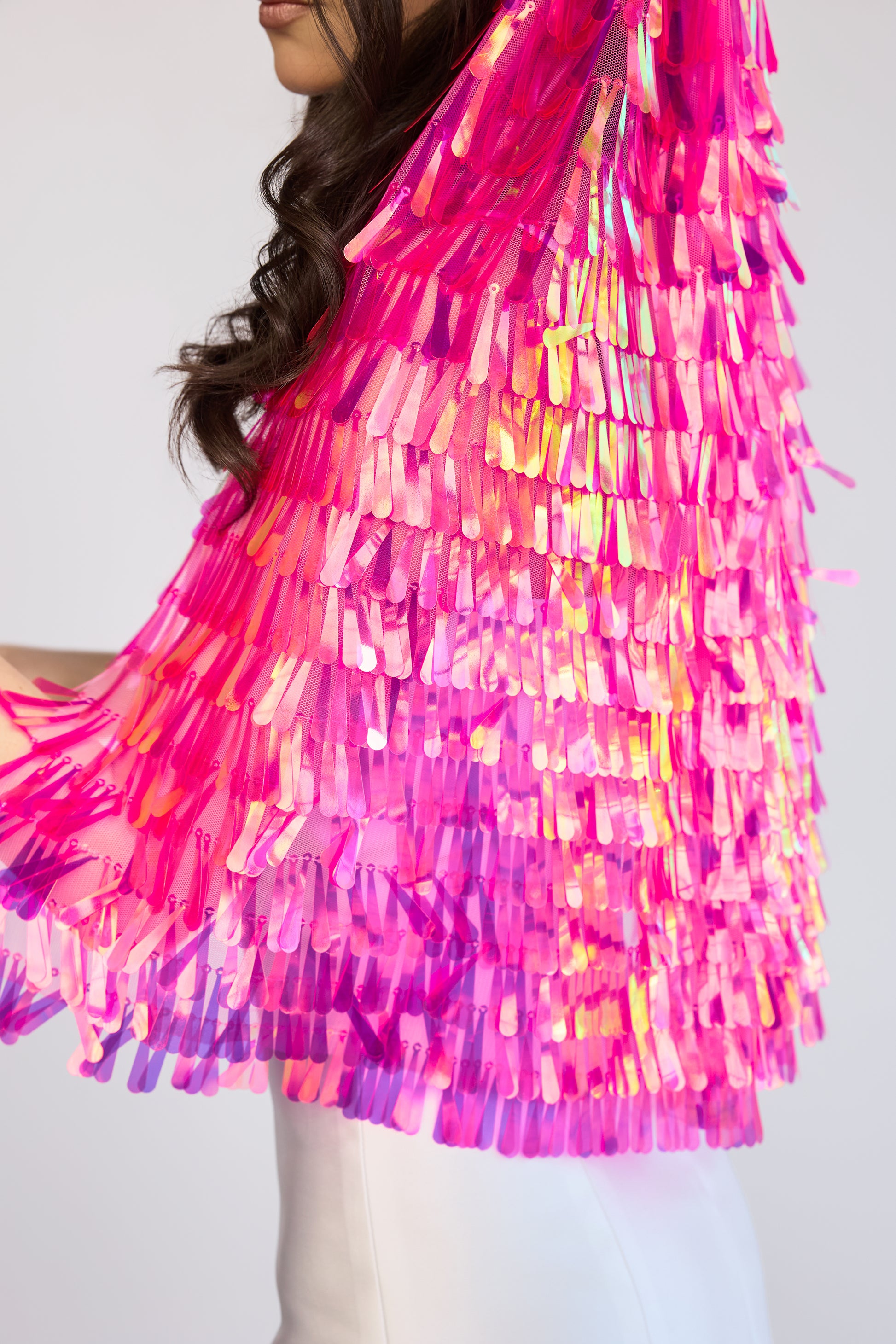 The Drama Queen Veil is pink, shiny, fringy, and vibrant!!! Putting on this veil will let the wearer know, it's time to celebrate!