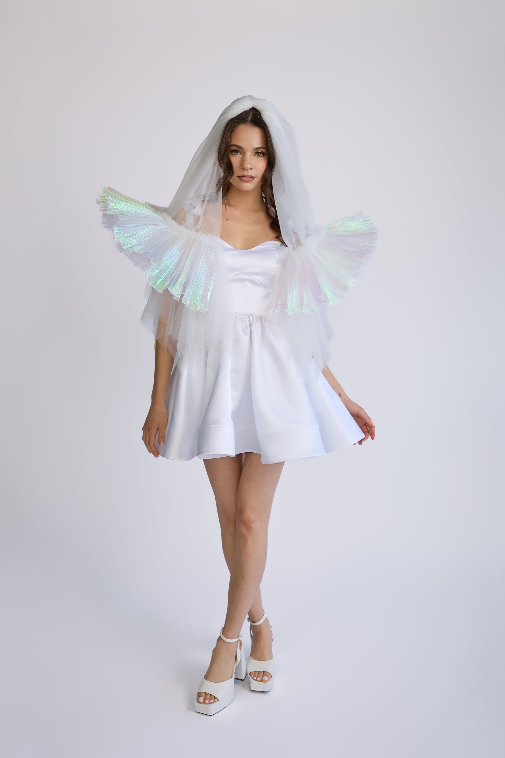 Float down the aisle like a true fairy tale princess with our Fairy Wings Veil! Adorned with delicate, ethereal wings, this veil adds a dreamy, whimsical touch to your bridal look. Perfect for your wedding day or any special bridal event, it’s sure to make you feel like you’re flying.