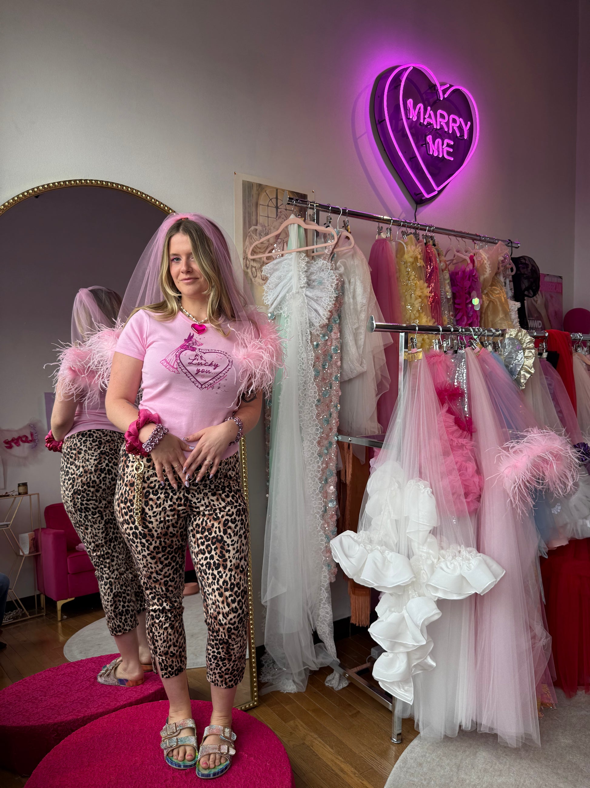 From brunch to bachelorette to “happily ever after,” meet your new favorite tee! Madison dreamed up these two limited-edition styles while planning her own wedding . They're the perfect easy-to-wear pieces for planning, parties, and all the moments after “I do.” Illustrated by Madison herself, made in the USA, and printed locally.