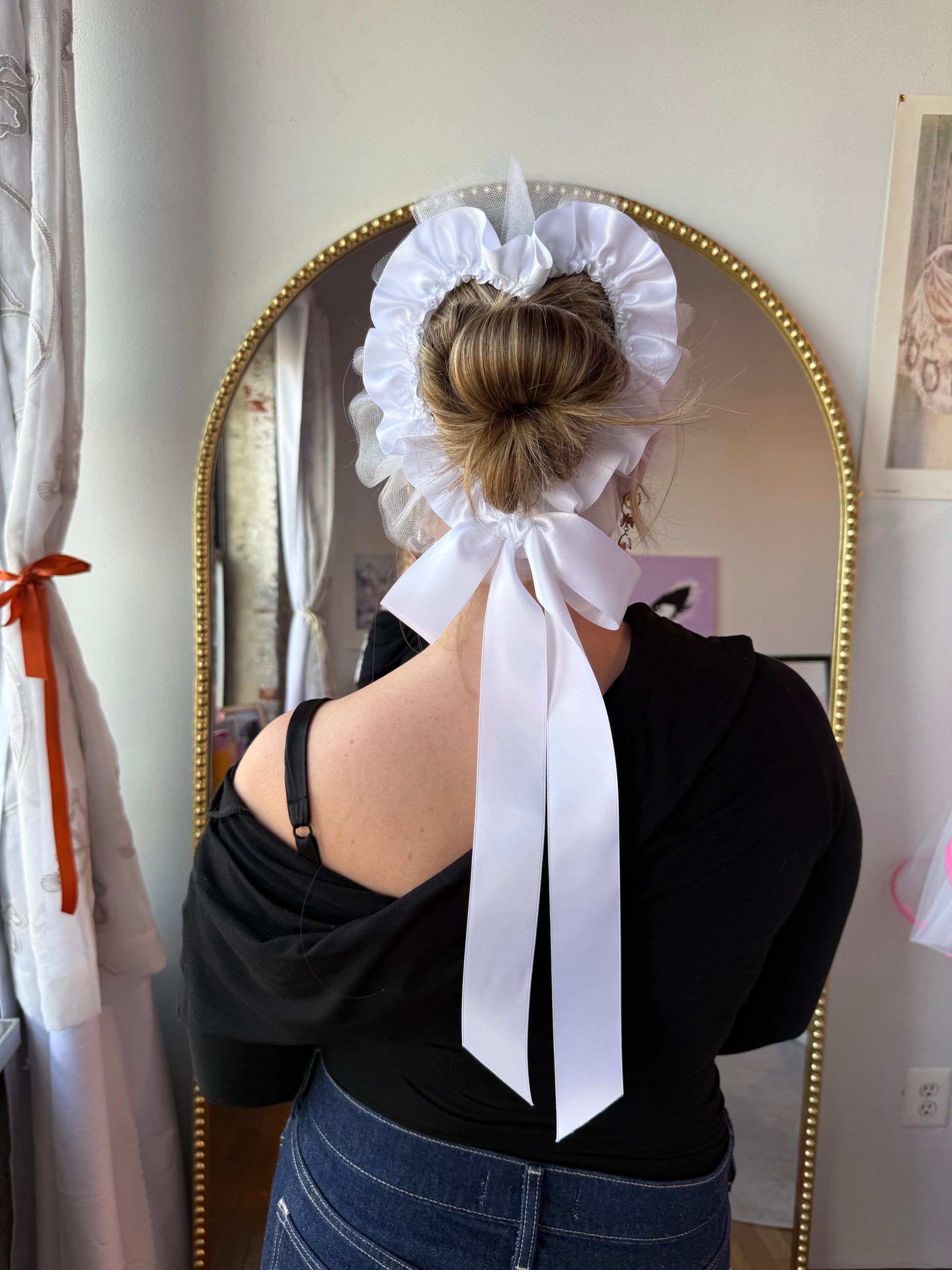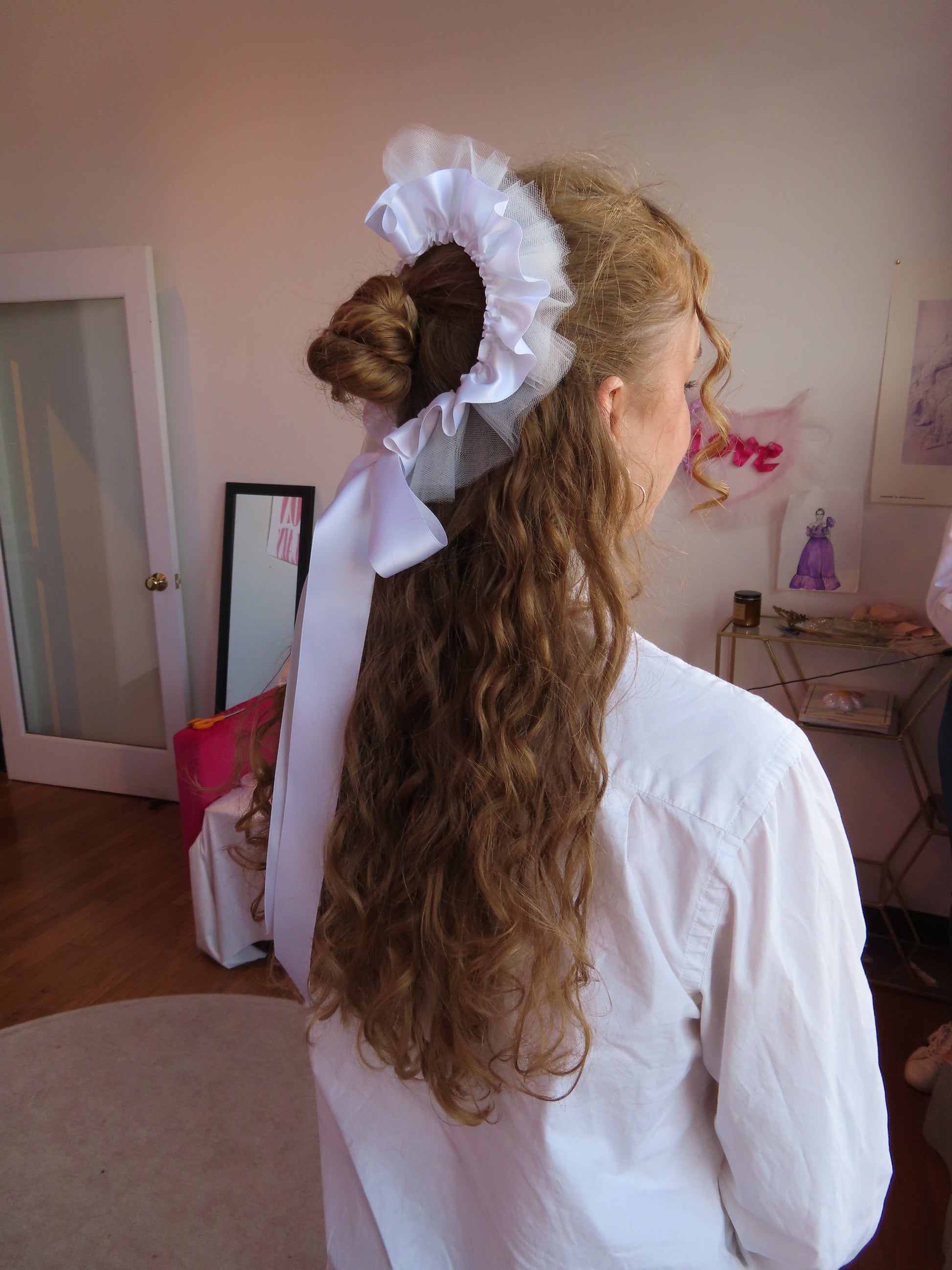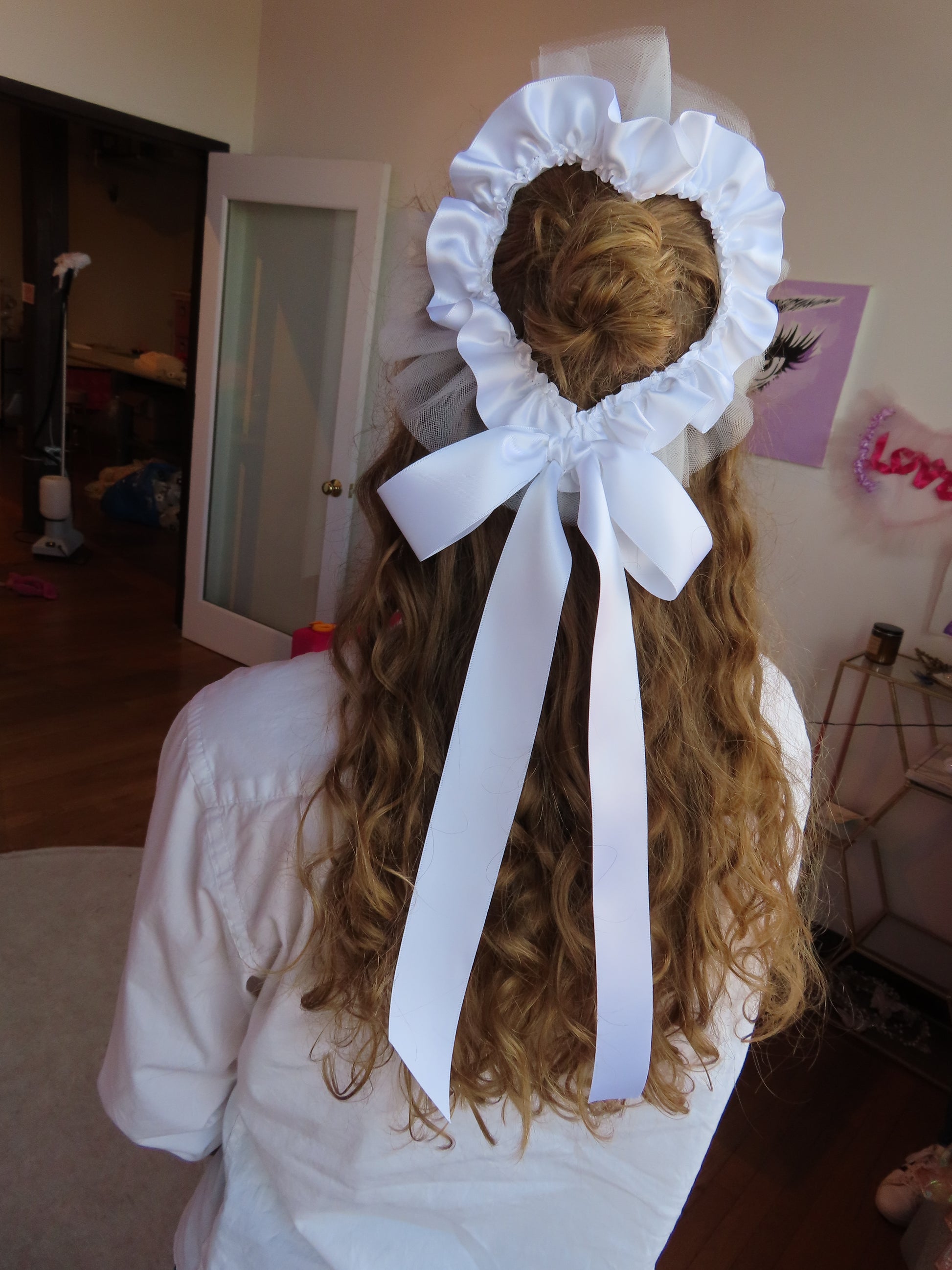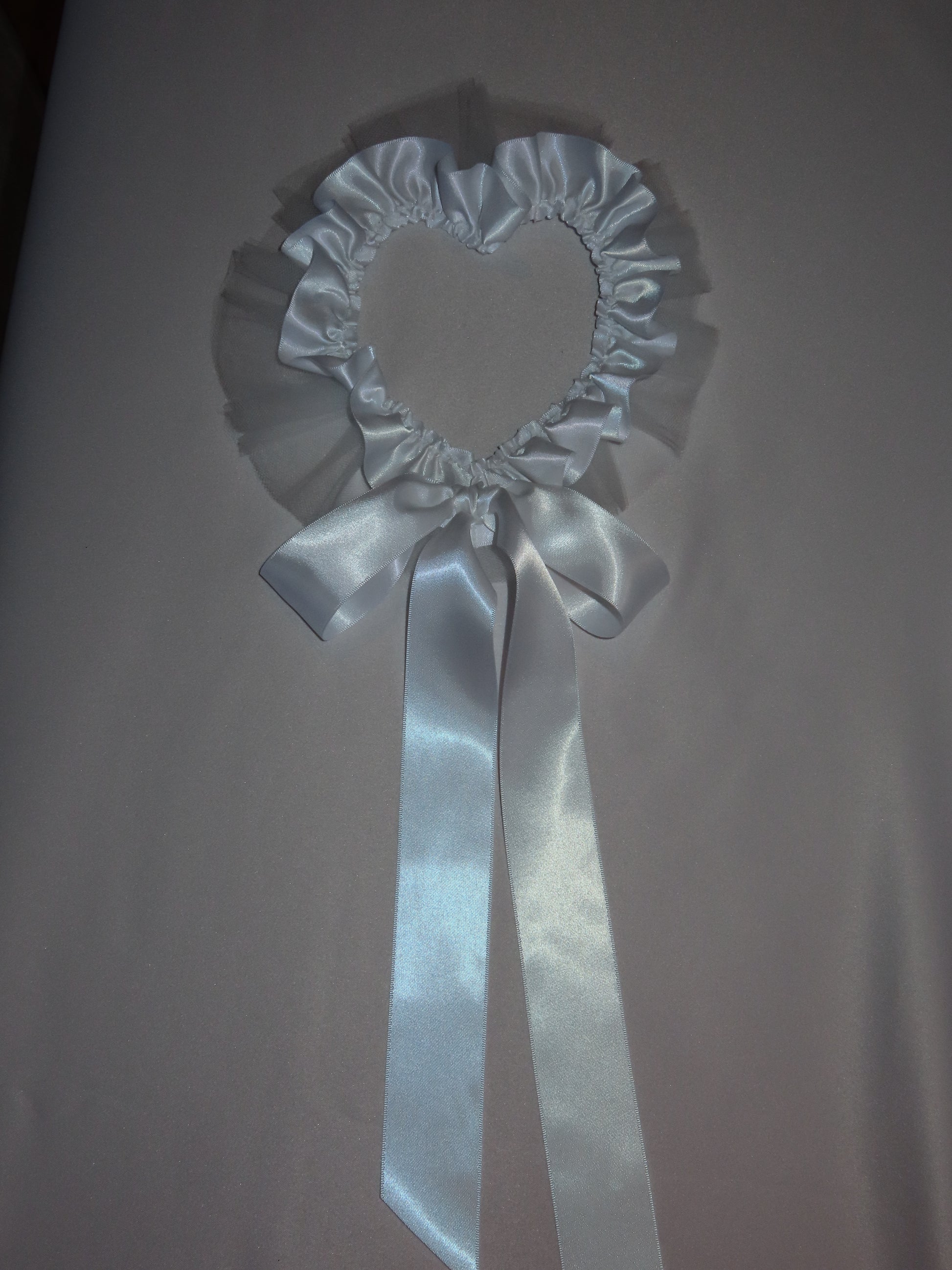 The perfect little adornment for your head and outfit! The heart halo easily clips on to your hair. Wear it around your bun, pony tail, hair down, or even pin it to your clothing! It is super light weight, and gives you the perfect little ruffle halo from the front. We hope you love your halo! Handmade in our studio in Philadelphia, made-to-order.